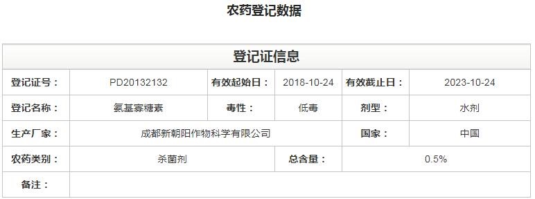 據了解,截止2018年12月,氨基寡糖素在中國農藥信息網登記信息共計77條,有效成分含量從0.5%-5%不等,主要以殺菌劑為主。而目前國內將氨基寡糖素定位在防治根結線蟲上的僅有兩家企業,最早登記的是成都新朝陽作物科學有限公司。新朝陽0.5%氨基寡糖素水劑(茛互)是國內第一個生物源根結線蟲防治合劑。